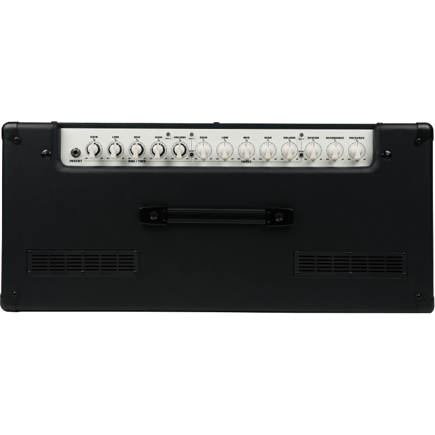 | Control Panel | Ch. 1: Independent Gain, Low, Mid, High, Noise Gate Trim & Volume; Ch. 2: Independent Gain, Low, Mid, High, Noise Gate Trim & Volume; Ch. 3: Independent Gain, Low, Mid, High, Noise Gate Trim & Volume |