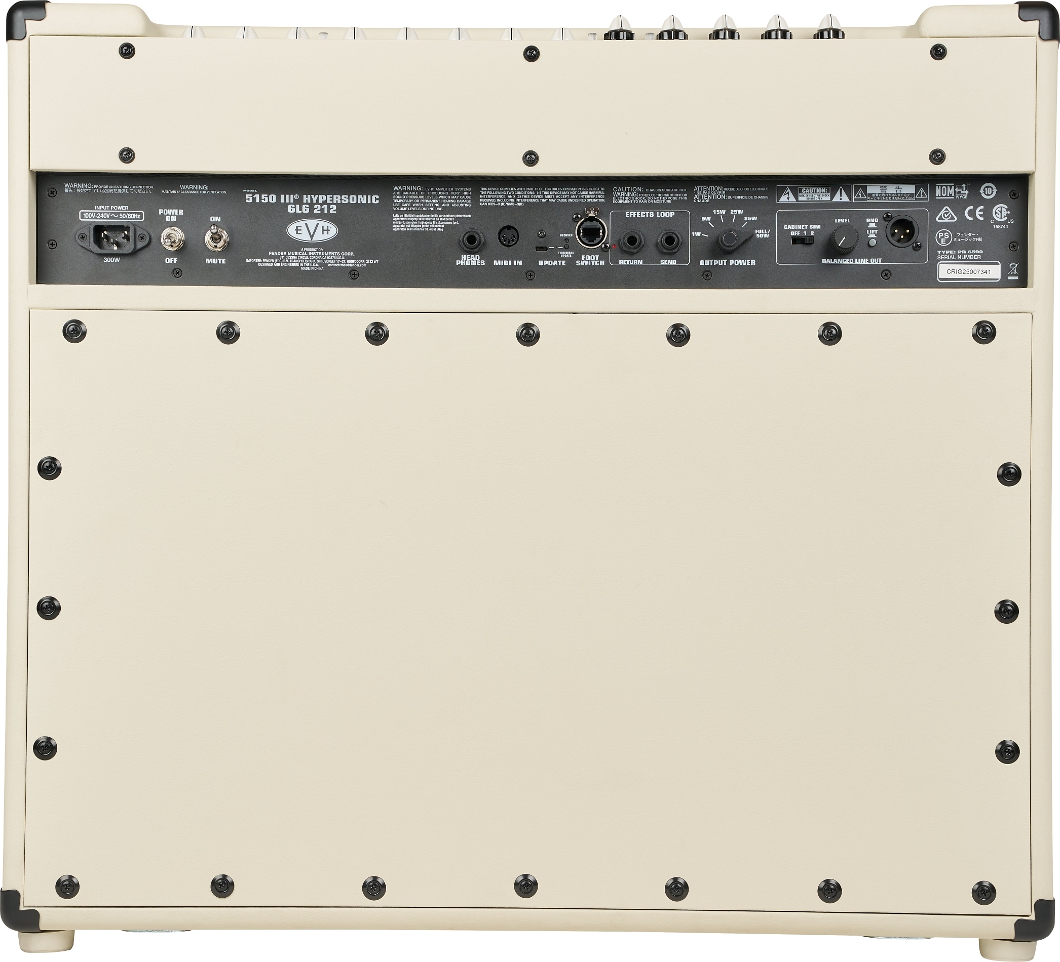 | Grill Cloth/Material | Woven Front Panel with Large EVH® Logo |