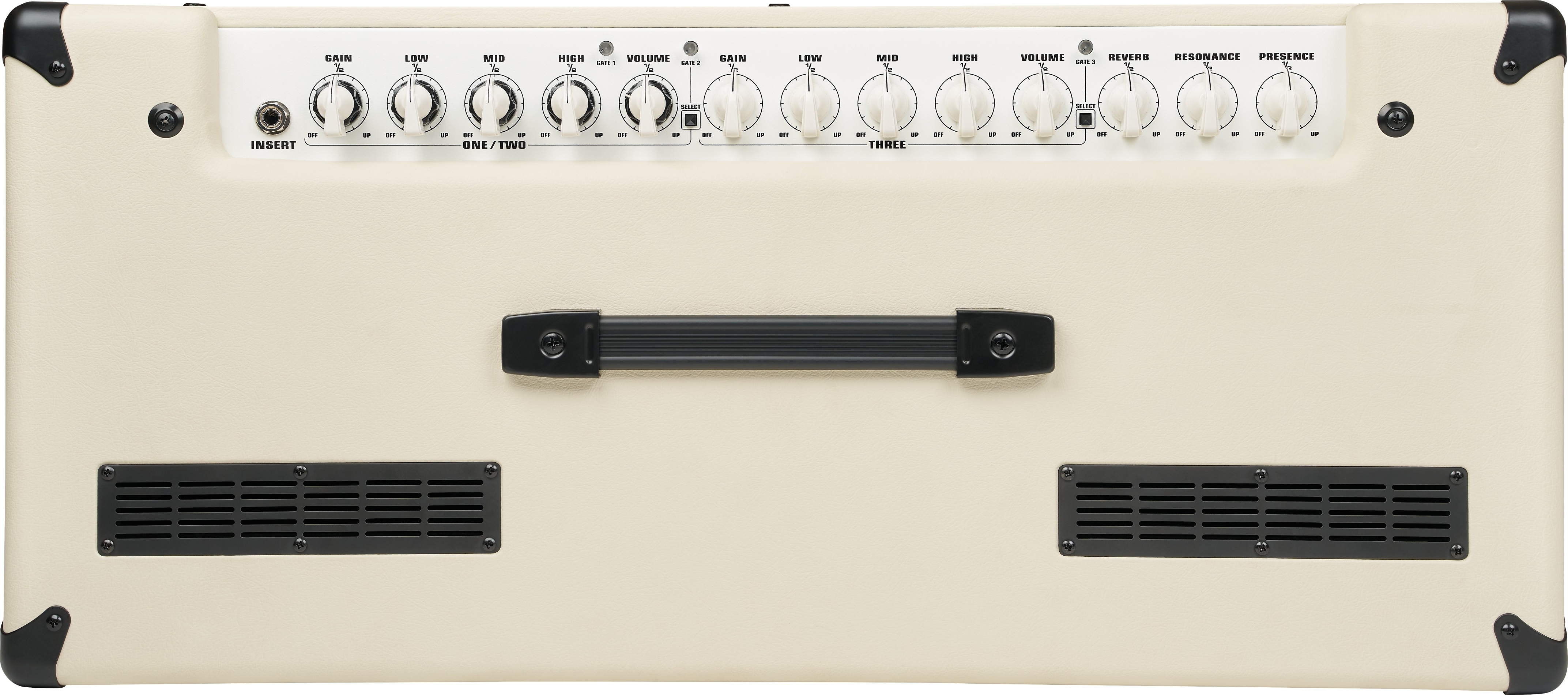 | Control Panel | Ch. 1: Independent Gain, Low, Mid, High, Noise Gate Trim & Volume; Ch. 2: Independent Gain, Low, Mid, High, Noise Gate Trim & Volume; Ch. 3: Independent Gain, Low, Mid, High, Noise Gate Trim & Volume |