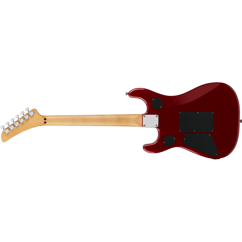 Like its predecessor, the 5150 DX features a modified Strat®-style basswood body with a deeper upper body curve. The graphite-reinforced bolt-on quartersawn baked maple neck features a comfortable modified "C" profile, hand-rubbed satin urethane back finish, heel-mount truss rod adjustment wheel and "hockey stick" headstock with EVH® logo decal. Built for smooth and speedy playability, the 12"-16" compound radius baked maple fingerboard has 22 jumbo frets and black dot inlays.