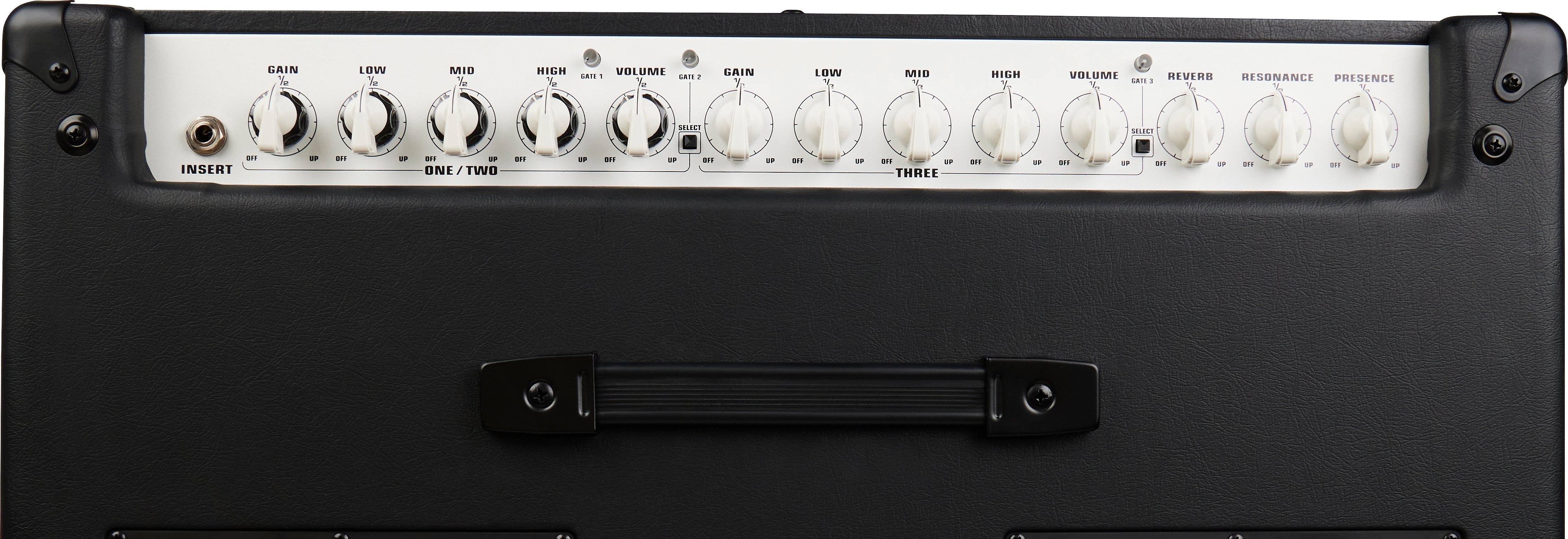| Control Panel | Ch. 1: Independent Gain, Low, Mid, High, Noise Gate Trim & Volume; Ch. 2: Independent Gain, Low, Mid, High, Noise Gate Trim & Volume; Ch. 3: Independent Gain, Low, Mid, High, Noise Gate Trim & Volume |