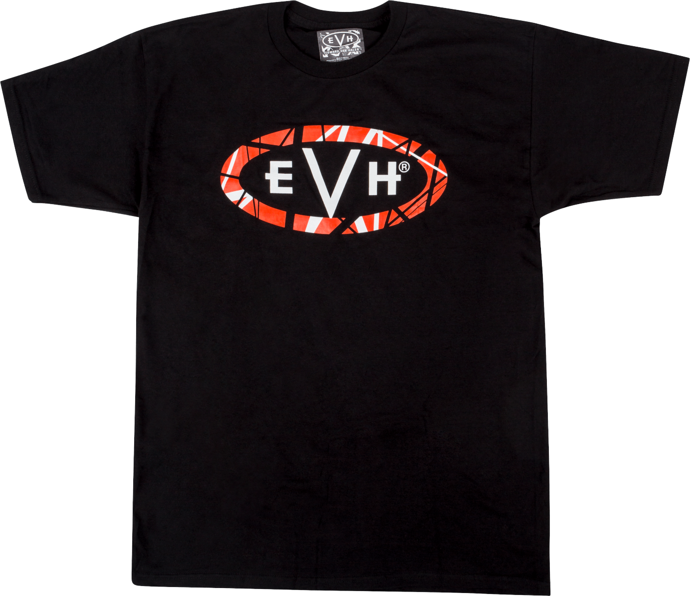 Let everyone know you're an EVH® fan with this stylish logo t-shirt! This shirt is all black with a large red, black and white EVH® logo on the front. 100 percent cotton