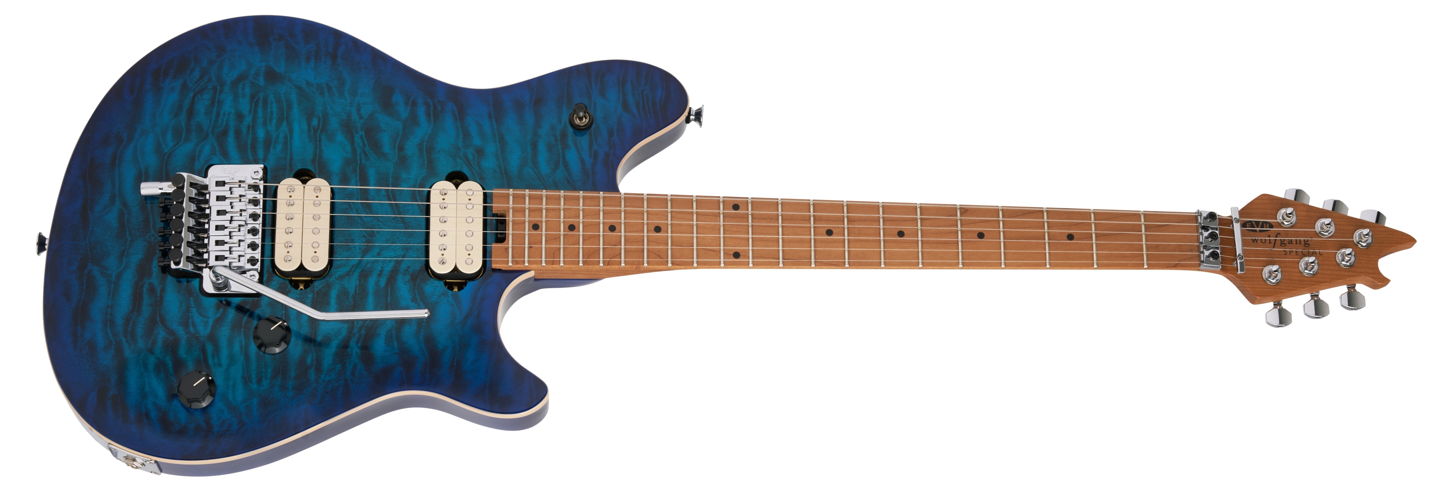 A pair of flagship custom-designed EVH® Wolfgang Alnico 2 humbucking pickups are mounted directly to the body, providing dynamic yet articulate voicing, as well as endless sustain for powerful chords and melody lines. A sturdy and dependable EVH-branded Floyd Rose® locking trem and Floyd Rose locking nut work in tandem for precise tuning even with extreme changes in pitch, while the EVH D-Tuna® retunes to drop-D and back with strict accuracy at the flick of a finger. The volume knob with treble bleed circuit has a 500K EVH Bourns® low friction pot for smooth swells and a tone control knob with a 250K Bourns high friction tone pot that prevents accidental tone shifting.